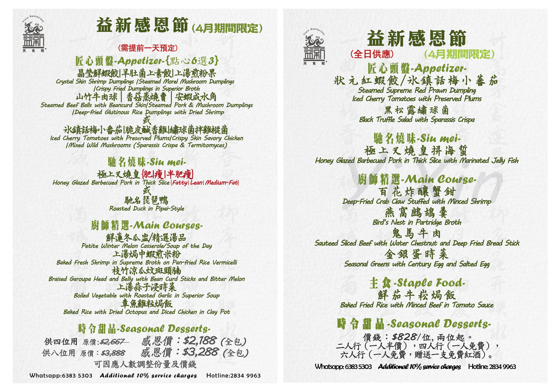 This April, YiXin Restaurant presents a special **"YiXin Thanksgiving" Set Menu**.